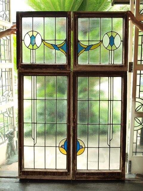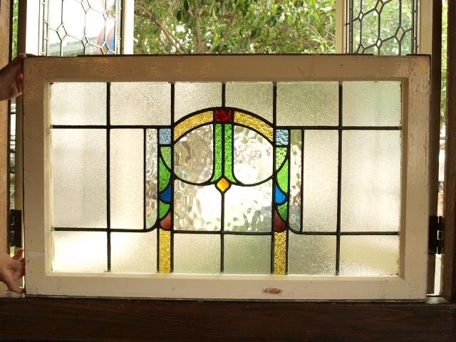 パーティションとして、大きめのサイズのステンドグラスを取り付けました。古い木枠をそのまま活かして、味わいのある雰囲気に。