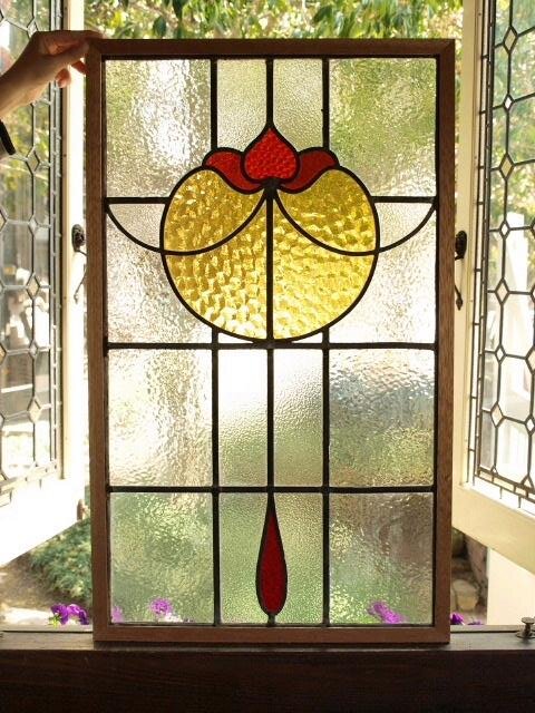 お部屋の窓の寸法に合わせてステンドグラスを加工しはめ込みました。
