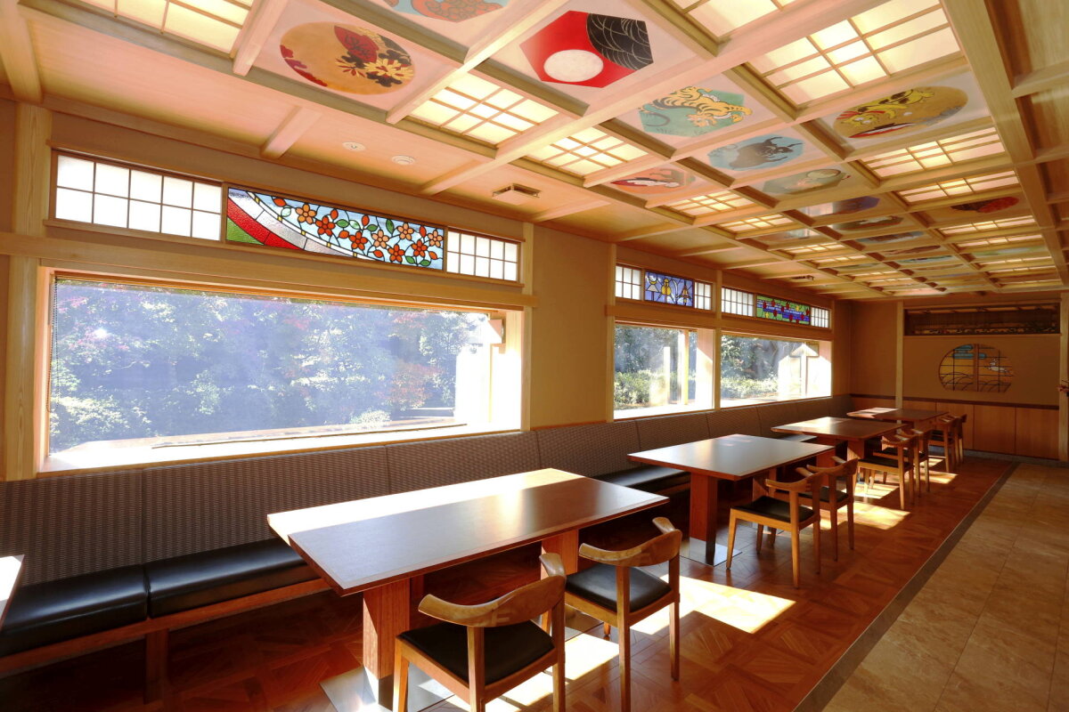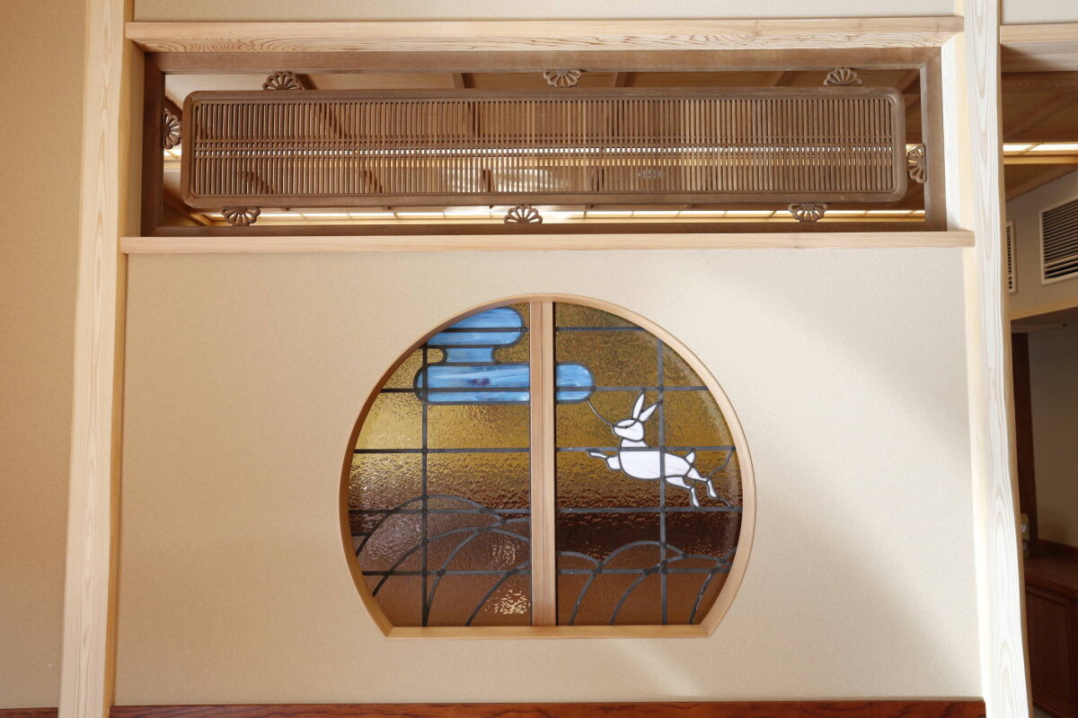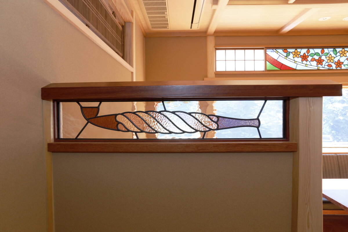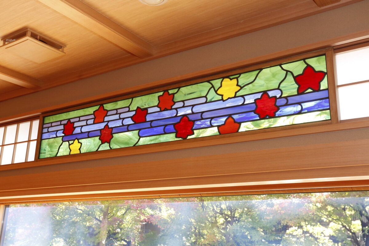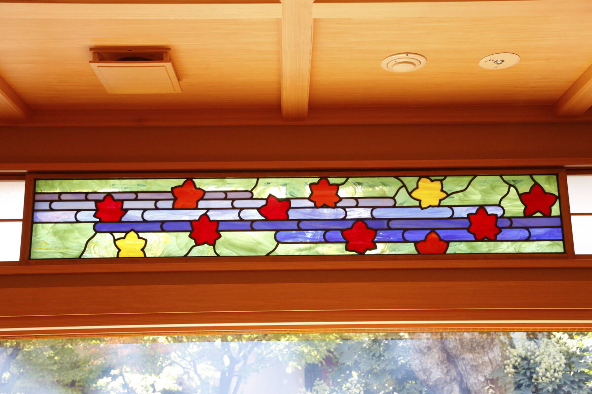 京都 南禅寺の料亭、南禅寺 順正様よりご依頼いただき、涼庭閣のステンドグラス窓5枚を製作いたしました。デザインはすべて実物大でご用意いただいたものを元に、お部屋の雰囲気に合うガラスにて製作しています。