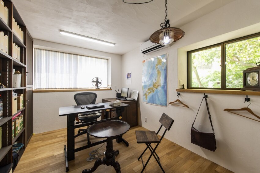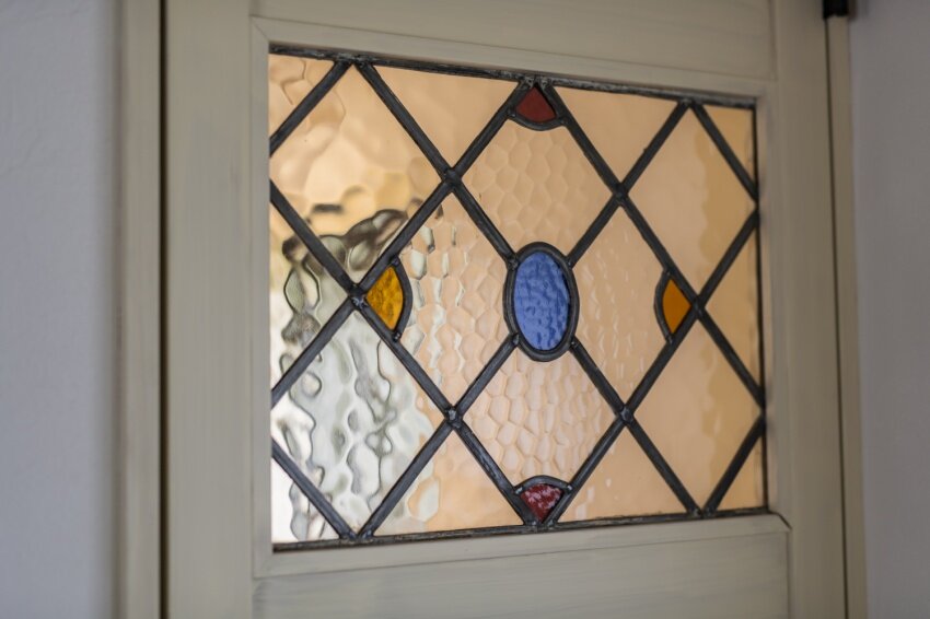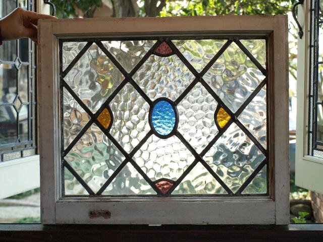 神奈川県鎌倉市のアトピッコハウスです。自然素材の家づくりを20年以上手がけている建材会社様。事務所にステンドグラスやランプ、ガーデンゲートを使っていただきました。元のアンティークステンドグラスです。