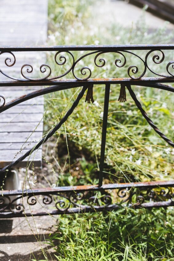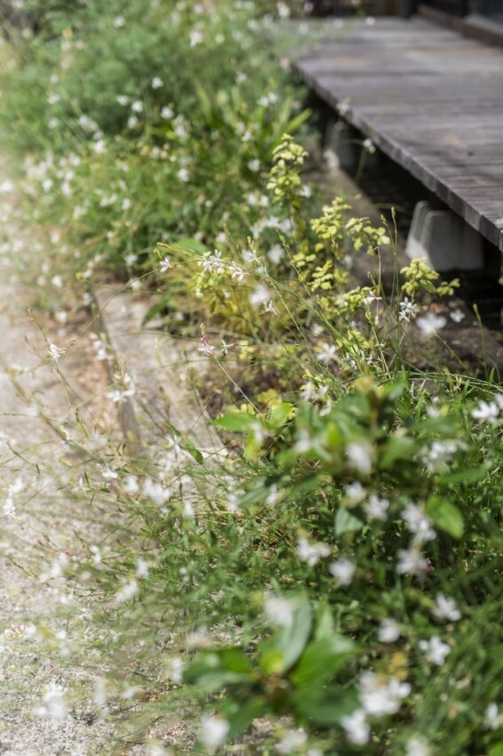 かわいらしい野花が咲くお庭。アンティークのガーデンゲートがとても良く似合います。