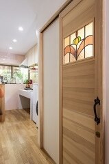 2階のトイレのドア。ゆらゆらガラスが印象的です。