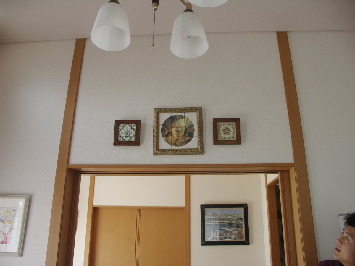 ステンドグラスを取り付けた2つのお部屋を仕切る欄間部分にはアンティークタイルも飾られています。どれもが調和して明るさの中にも落ち着きのあるしっとりとした空間を演出しています。