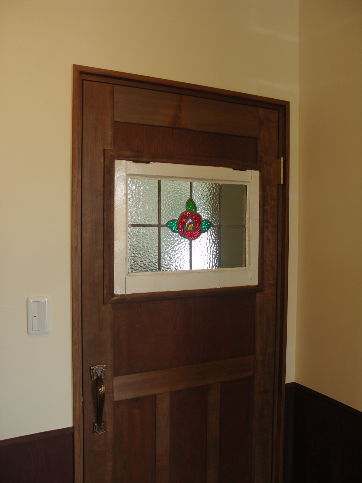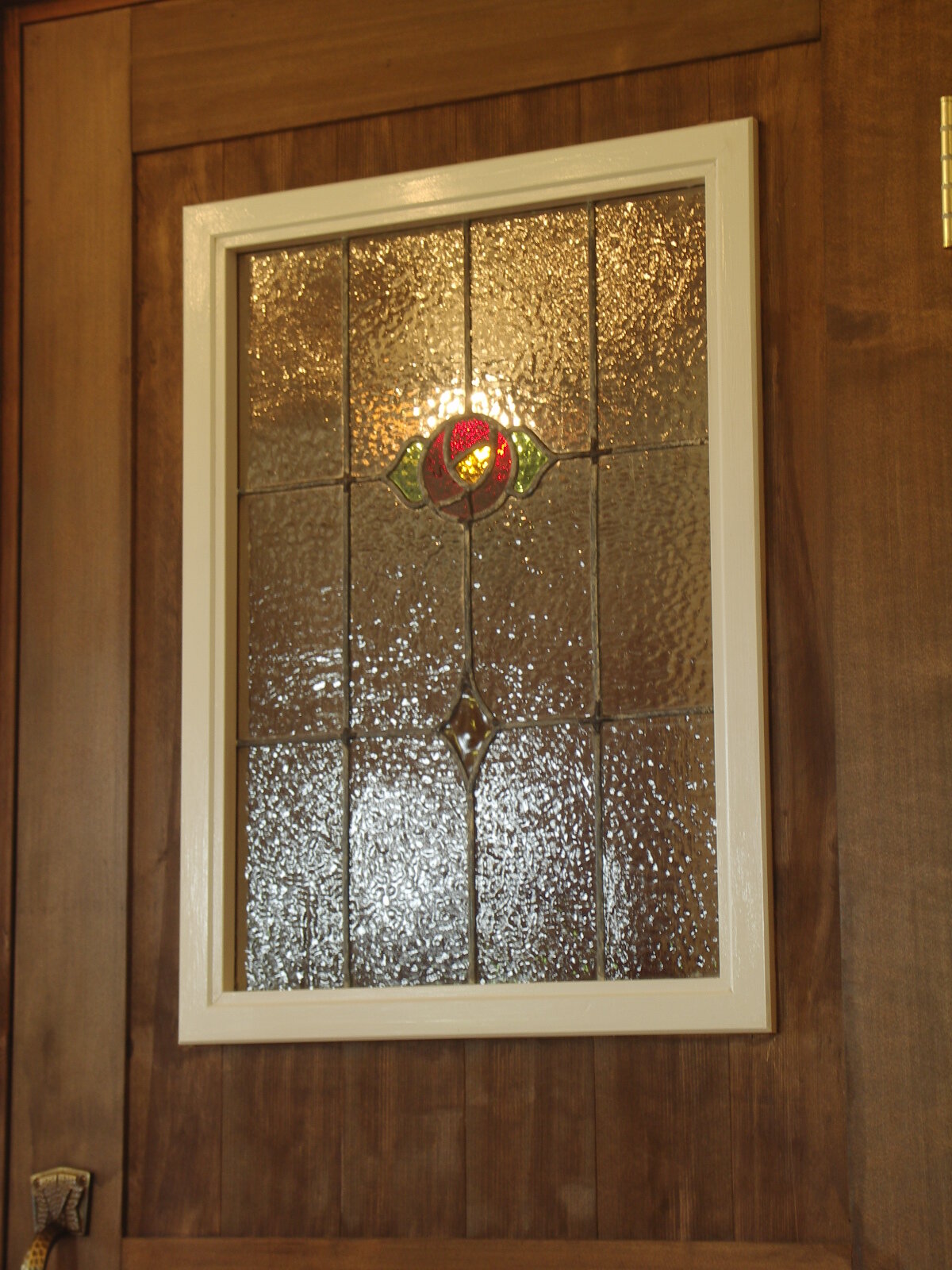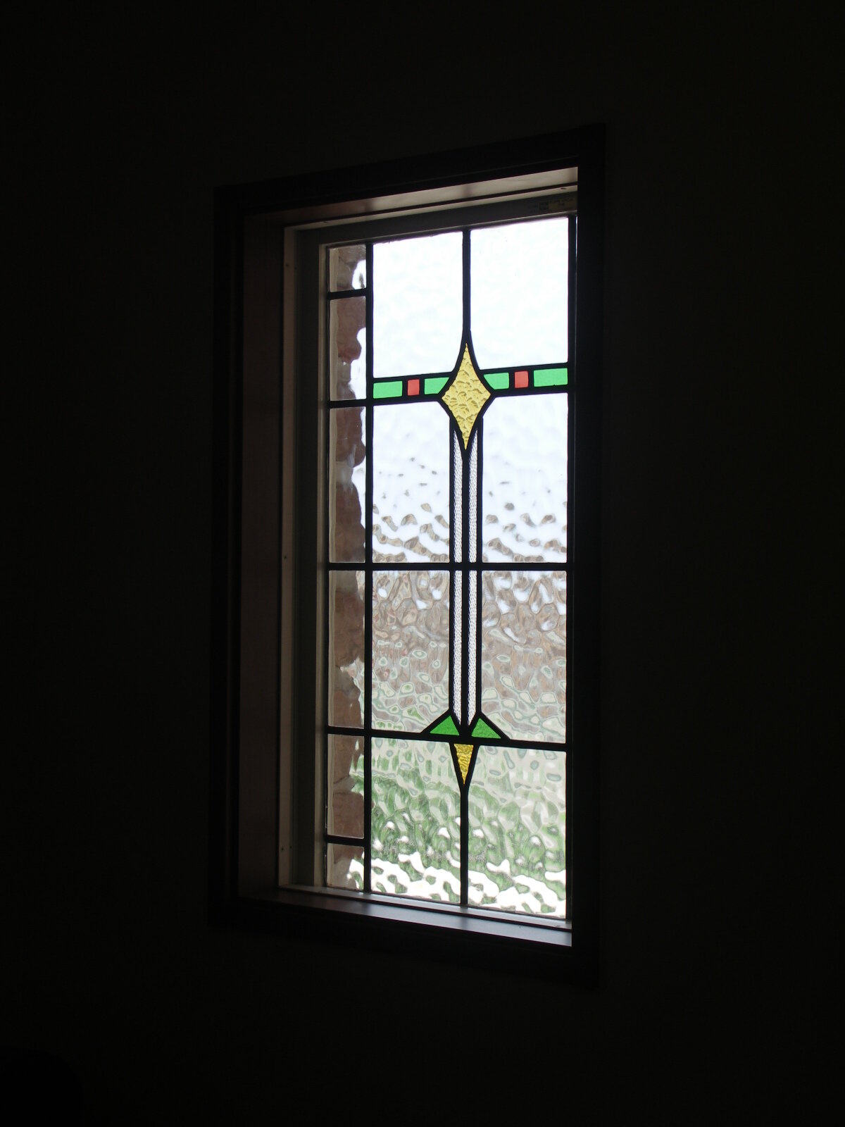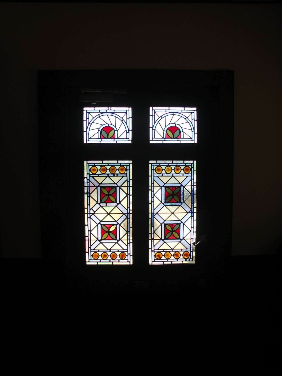 ドア横の明かりとりの窓にもステンドグラスが取り付けられています。