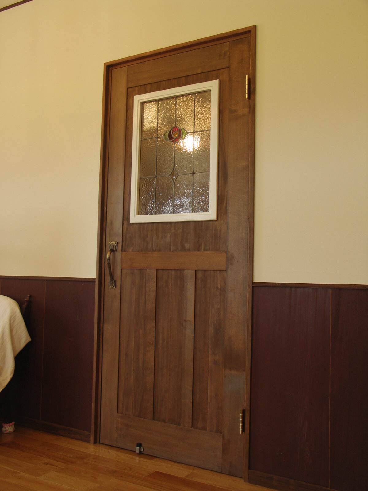 アンティーク枠を活かしてそのままドアに取り付けてあります。