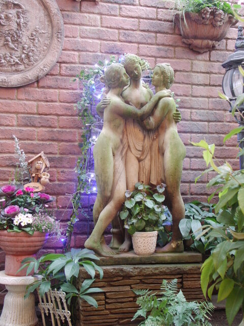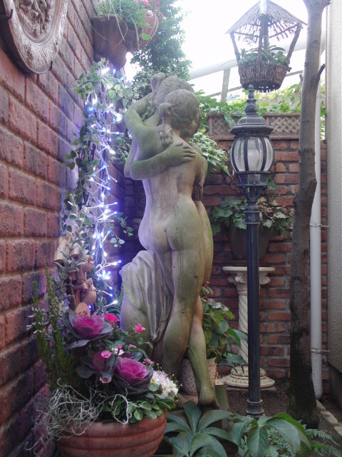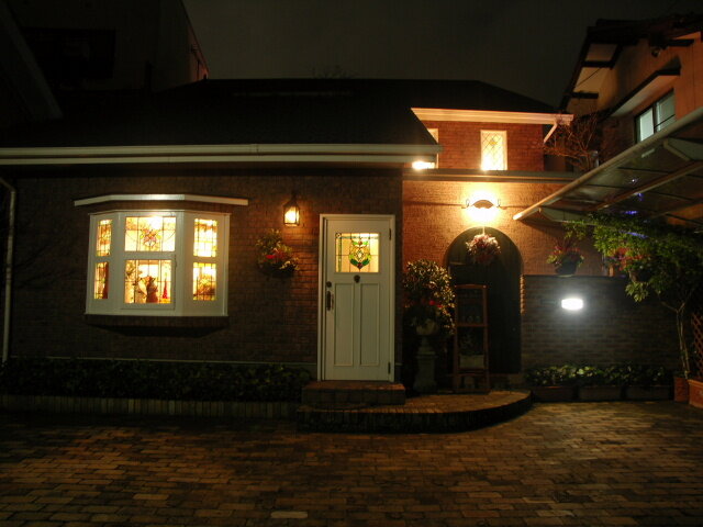 事例No.610でもご紹介した香川県のO邸です。カフェ兼ご自宅には数多くのアンティークが並びます。サンルームから見える中庭は印象的なオーナメントが置かれ華やかに。