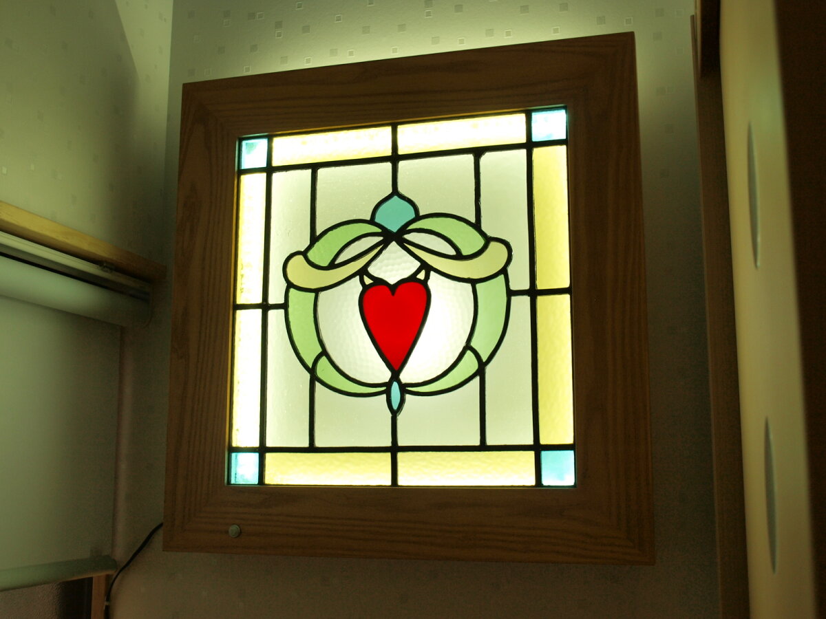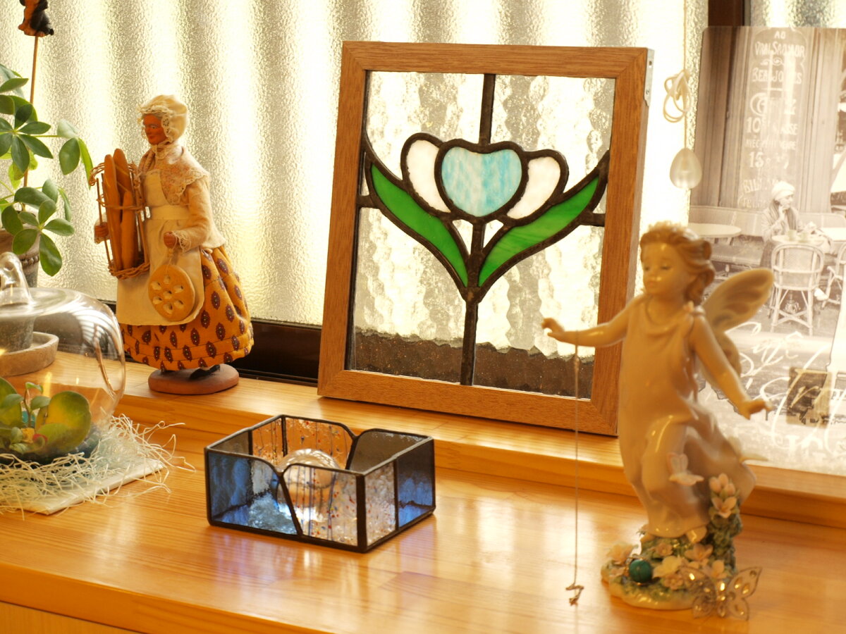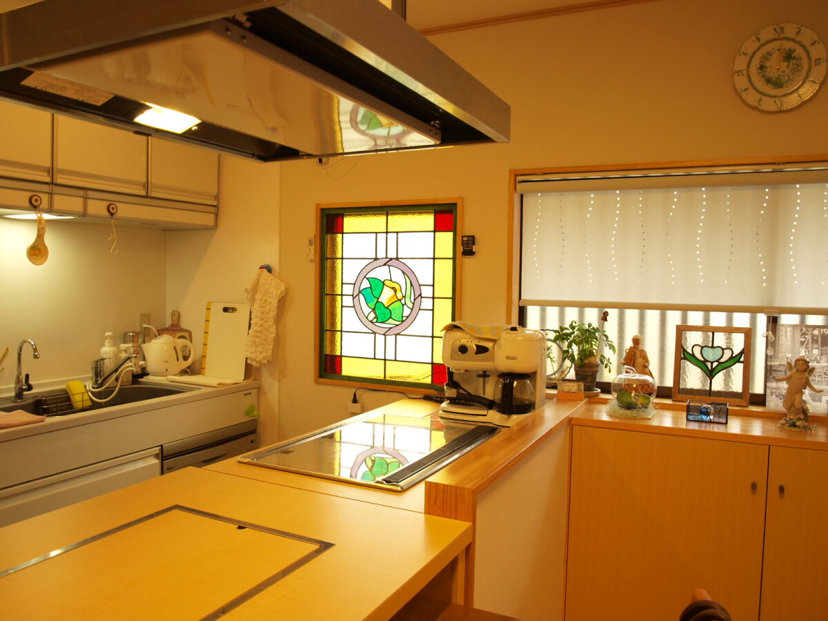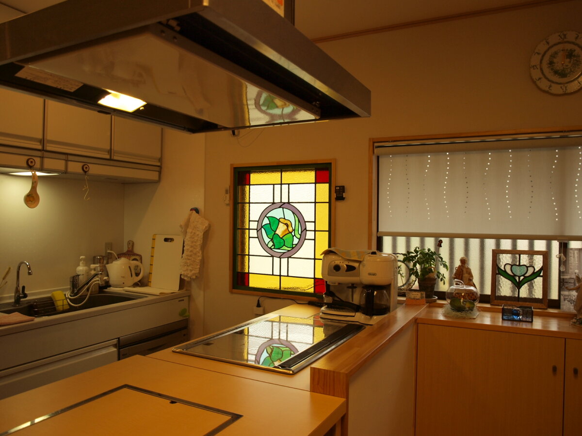 お料理教室の生徒さんにも大好評のステンドグラス。数時間のお教室のひとときを楽しく過ごしてほしいという心遣いが嬉しいですよね。