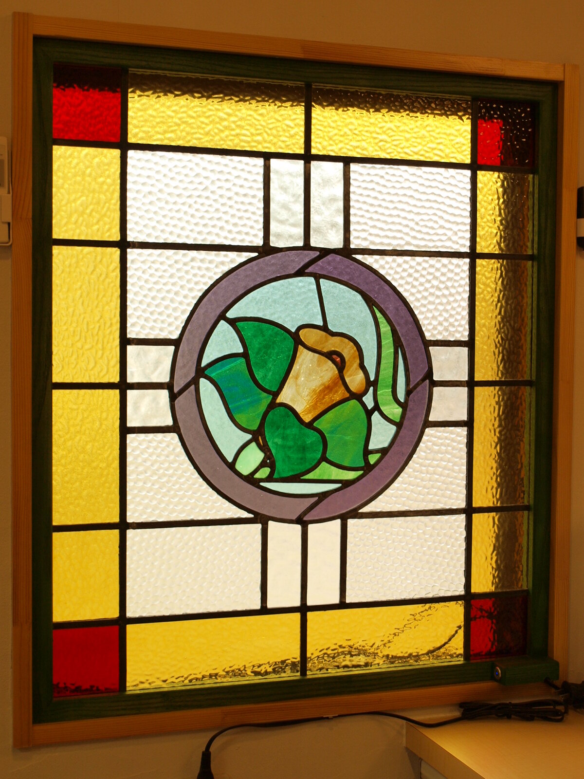 玄関の明かり取りの窓に取り付けました。