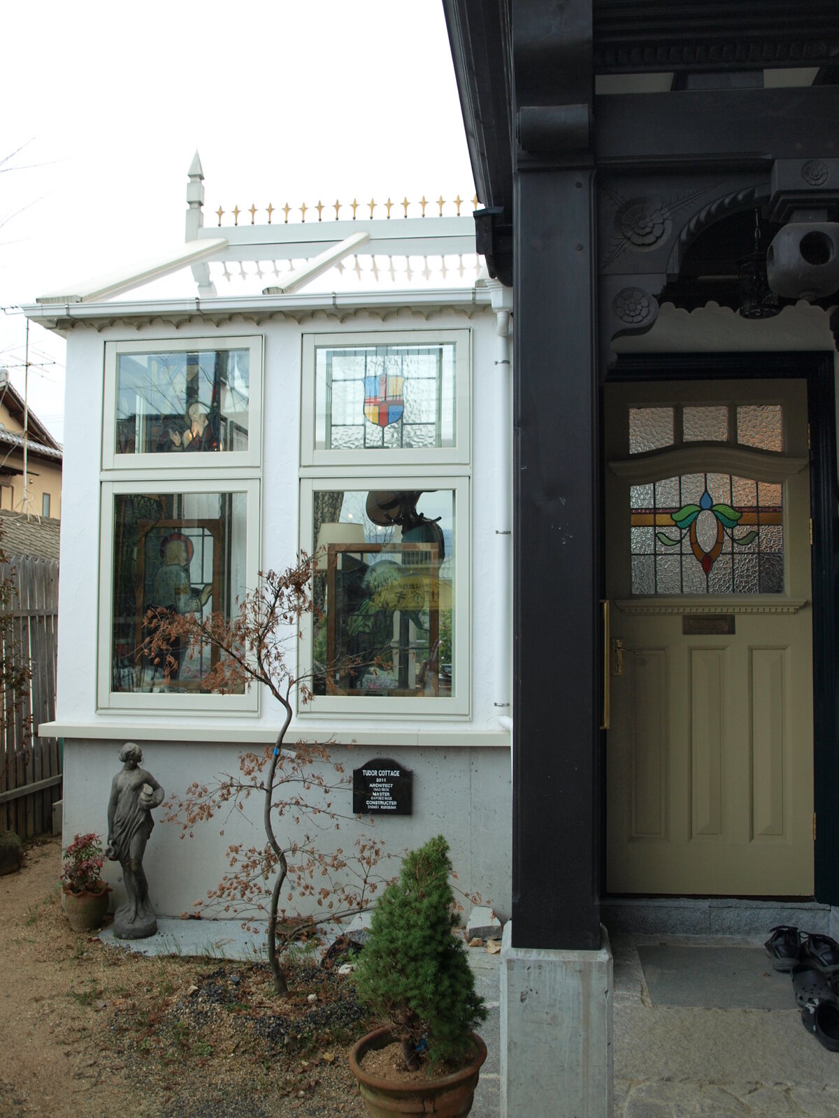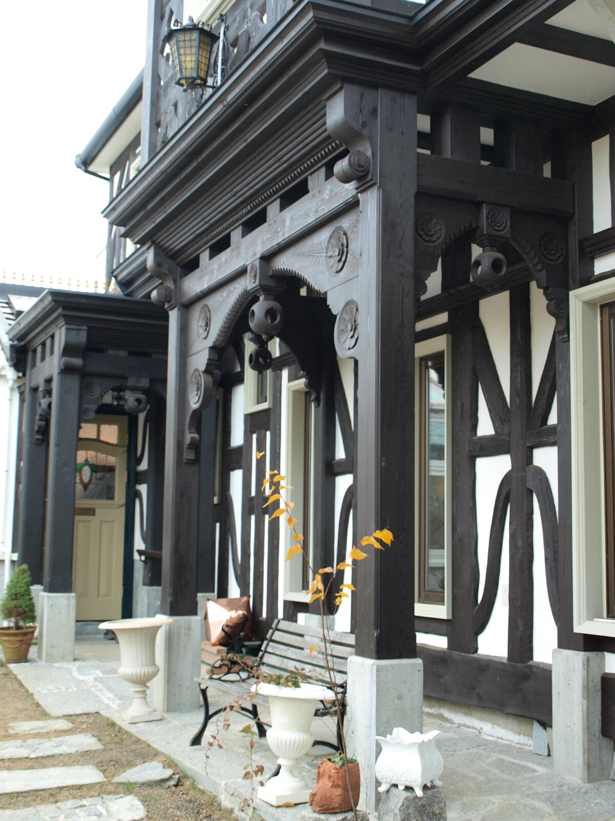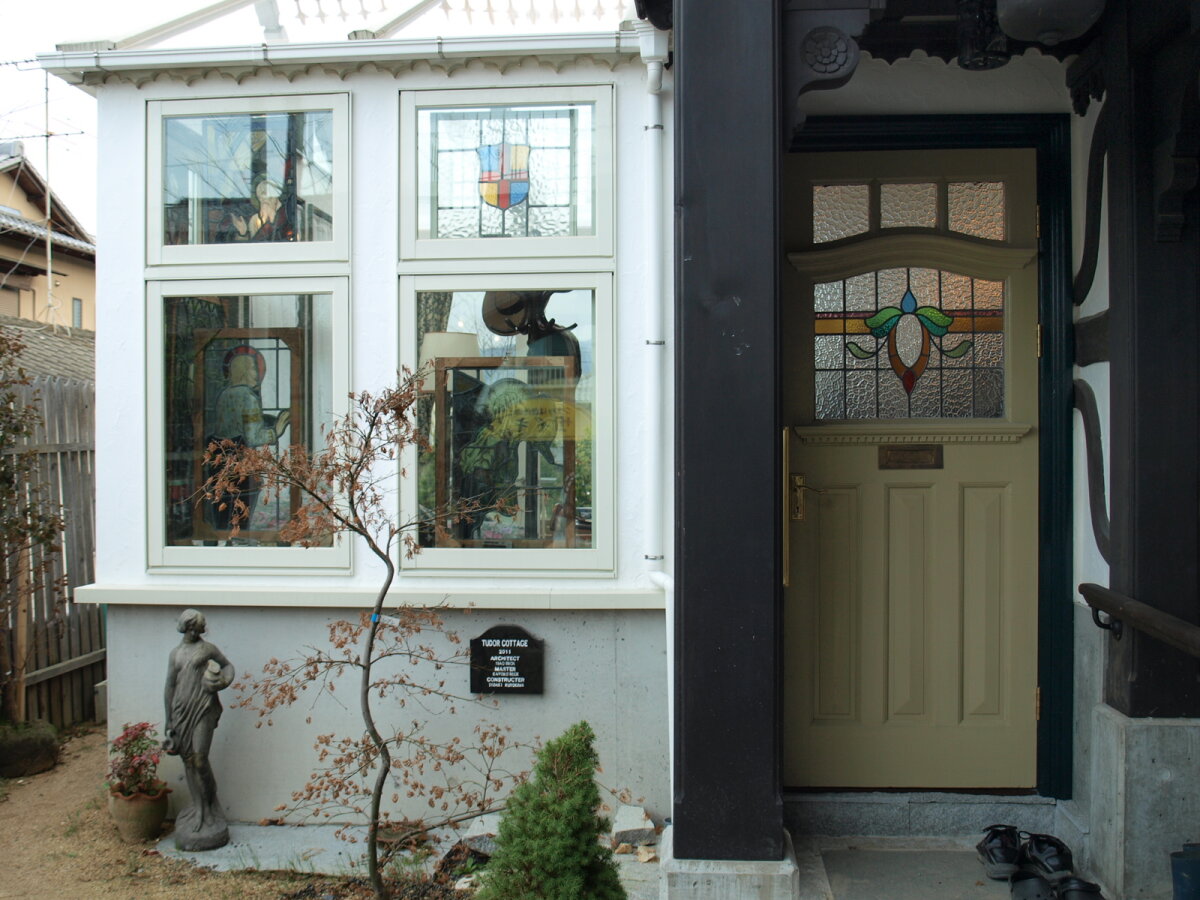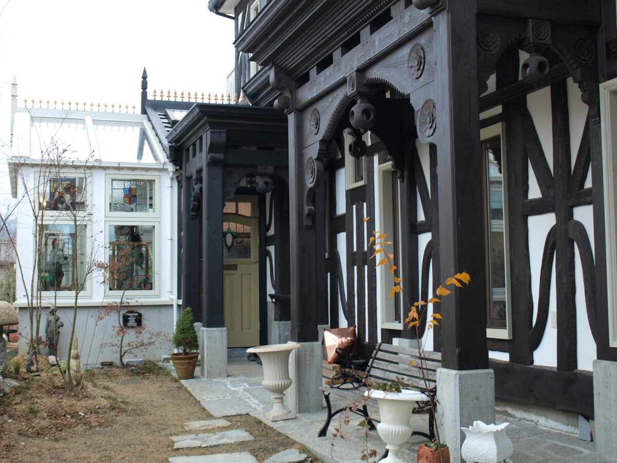 愛媛県のB邸にお邪魔させていただきました。施工事例No.207、208、609でもご紹介させていただいたB邸。今回はさらに増築を重ね、ご主人の創意工夫と綿密な設計でイギリスのハーフティンバーの邸宅を深く追求した一棟を創り上げました。