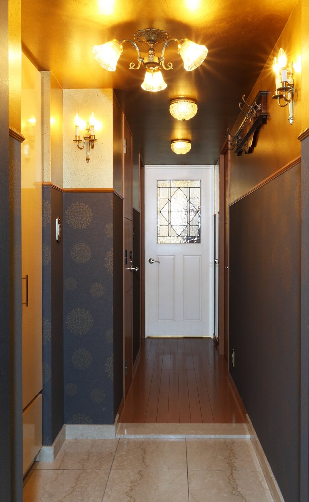 神奈川県のS邸です。マンションのリフォームでご希望のサイズに加工したステンドグラスをお部屋のドアに取り付けました。元のアンティークステンドグラスです。