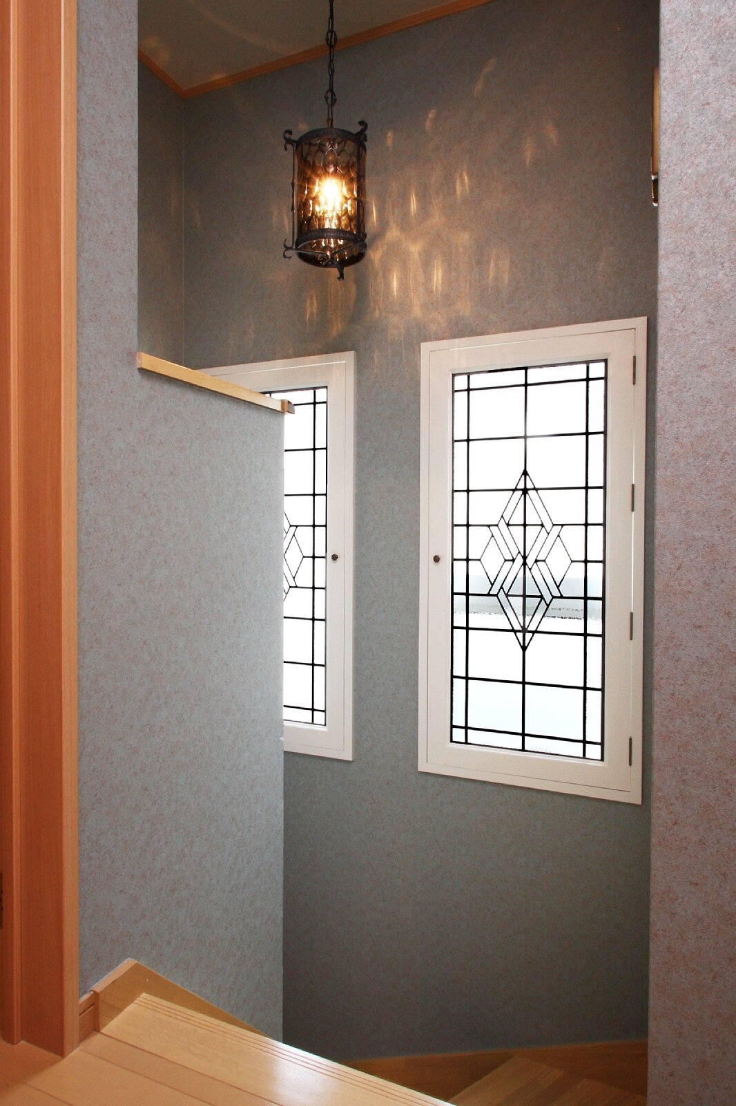 神奈川県のYK邸です。戸建てのリフォームでご希望のサイズに加工したステンドグラスをお部屋の窓に取り付けました。元のアンティークステンドグラスです。
