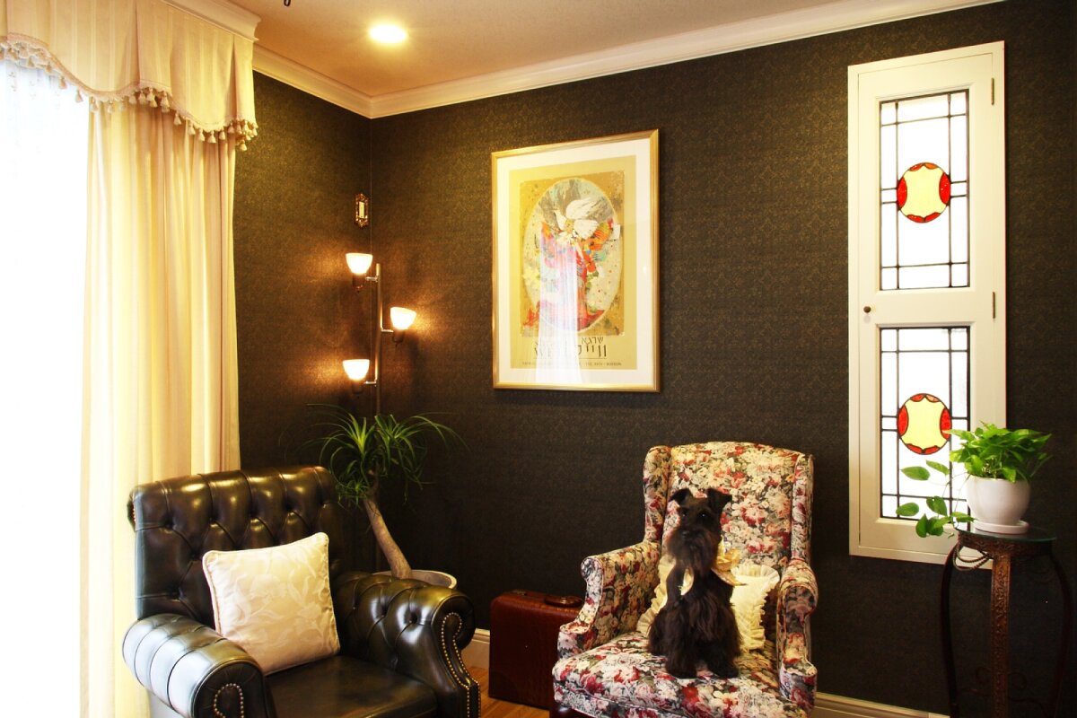加工した2枚のステンドグラスをお部屋の壁にはめ込みました。