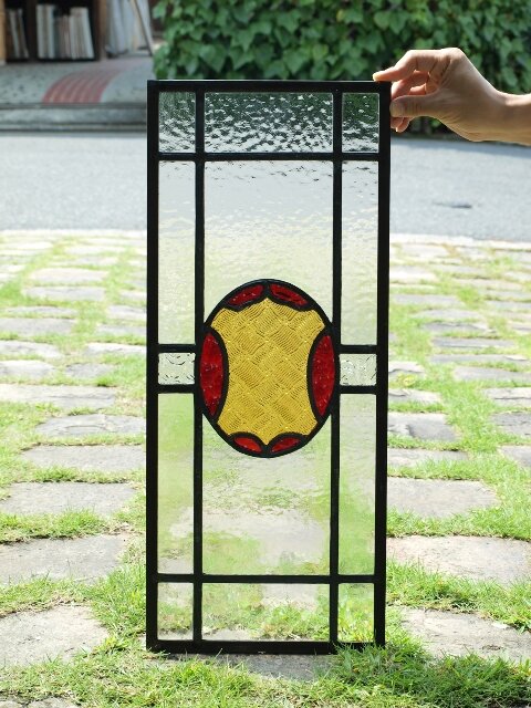 神奈川県のYK邸です。戸建てのリフォームでご希望のサイズに加工したステンドグラスをお部屋の窓に取り付けました。元のアンティークステンドグラスです。