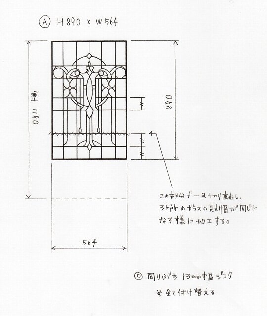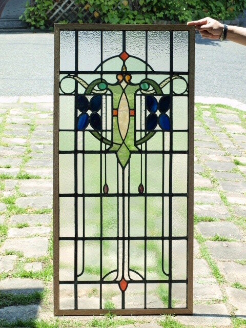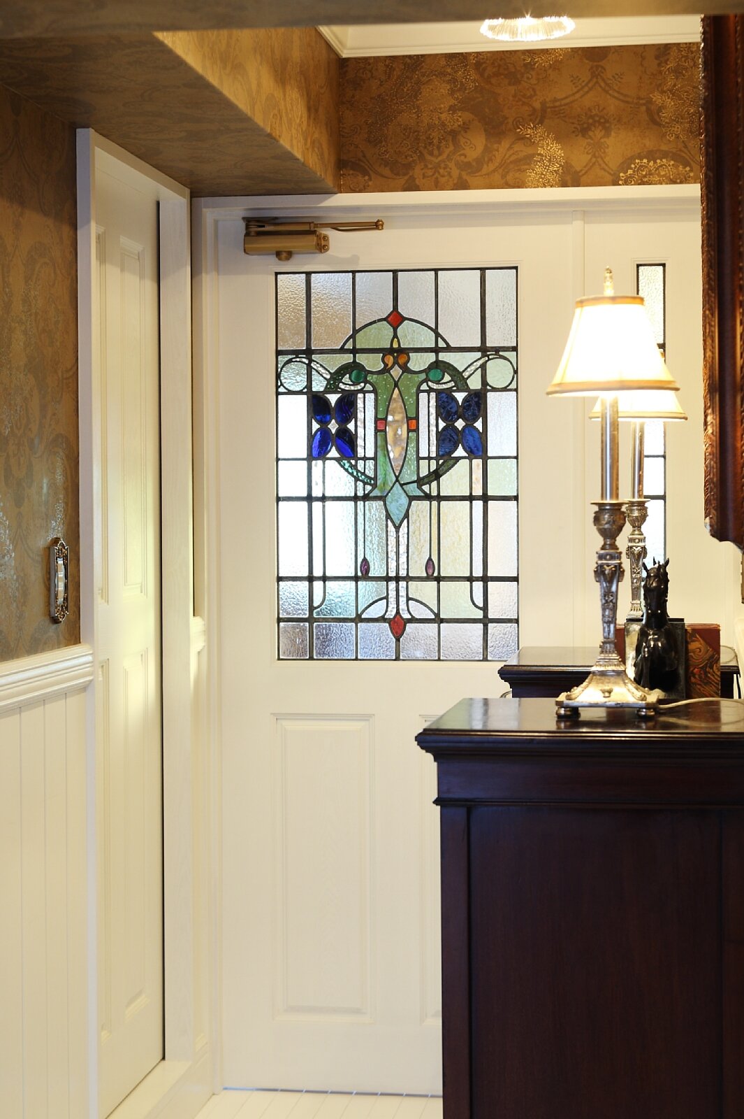 神奈川県のY邸です。マンションのリフォームでご希望のサイズに加工したステンドグラスをお部屋のドアに取り付けました。元のアンティークステンドグラスです。