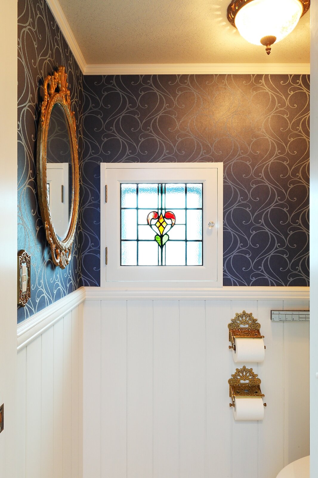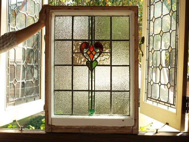 東京都のK邸です。マンションのリフォームでご希望のサイズに加工したステンドグラスをお部屋のドアに取り付けました。元のアンティークステンドグラスです。
