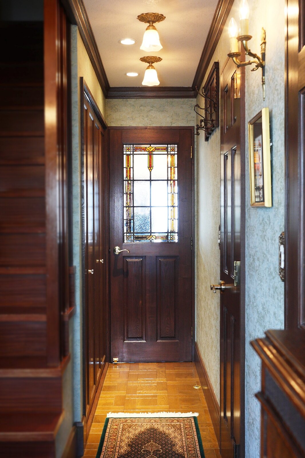 神奈川県のF邸です。戸建てのリフォームでご希望のサイズに加工したステンドグラスをお部屋のドアに取り付けました。元のアンティークステンドグラスです。
