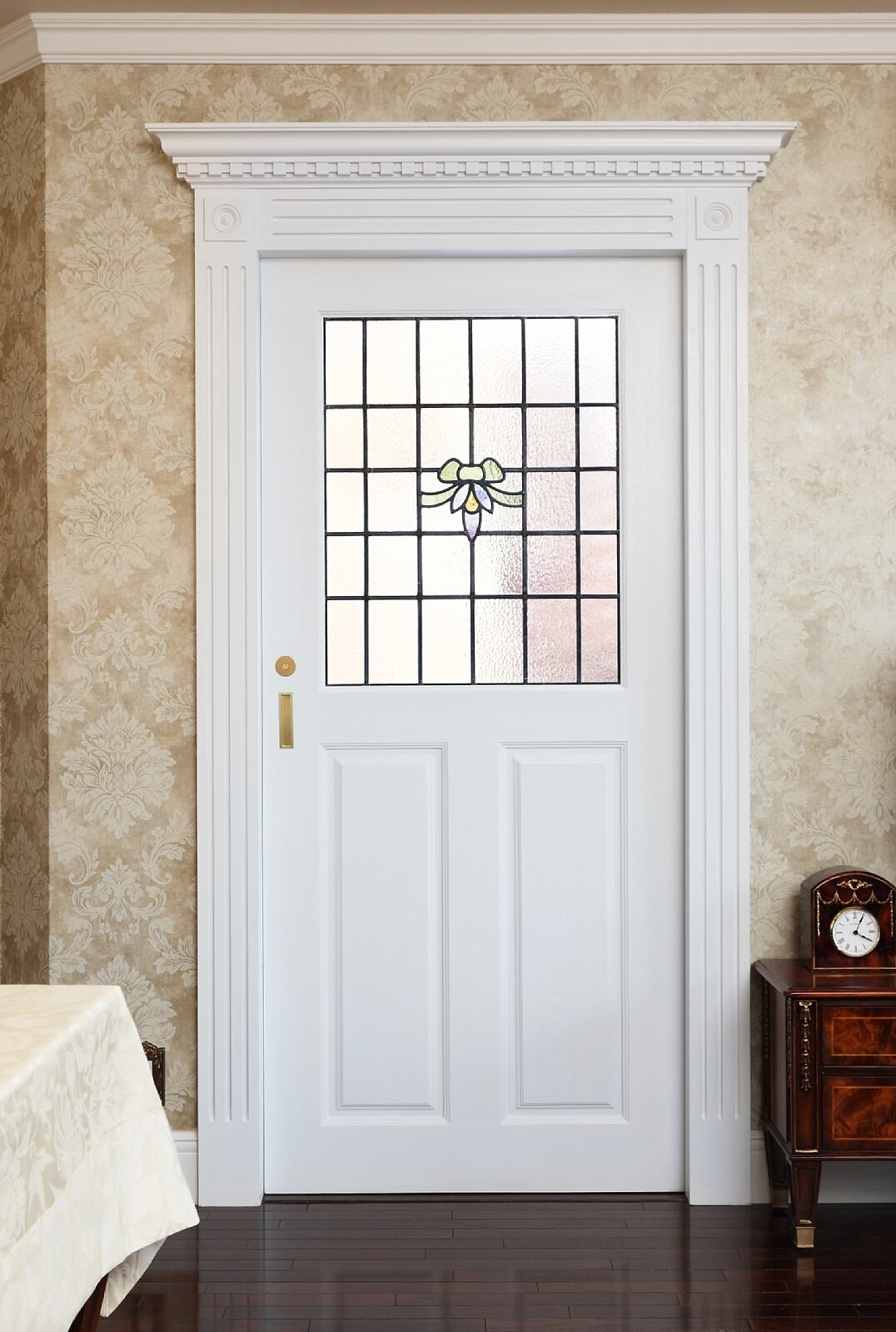 東京都のさちみりほ様邸です。マンションのリフォームでご希望のサイズに加工したステンドグラスをお部屋のドアに取り付けました。元のアンティークステンドグラスです。