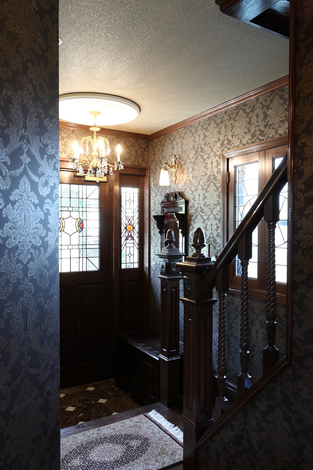 東京都のW邸です。戸建てのリフォームでご希望のサイズに加工したステンドグラスをお部屋の窓に取り付けました。元のアンティークステンドグラスです。