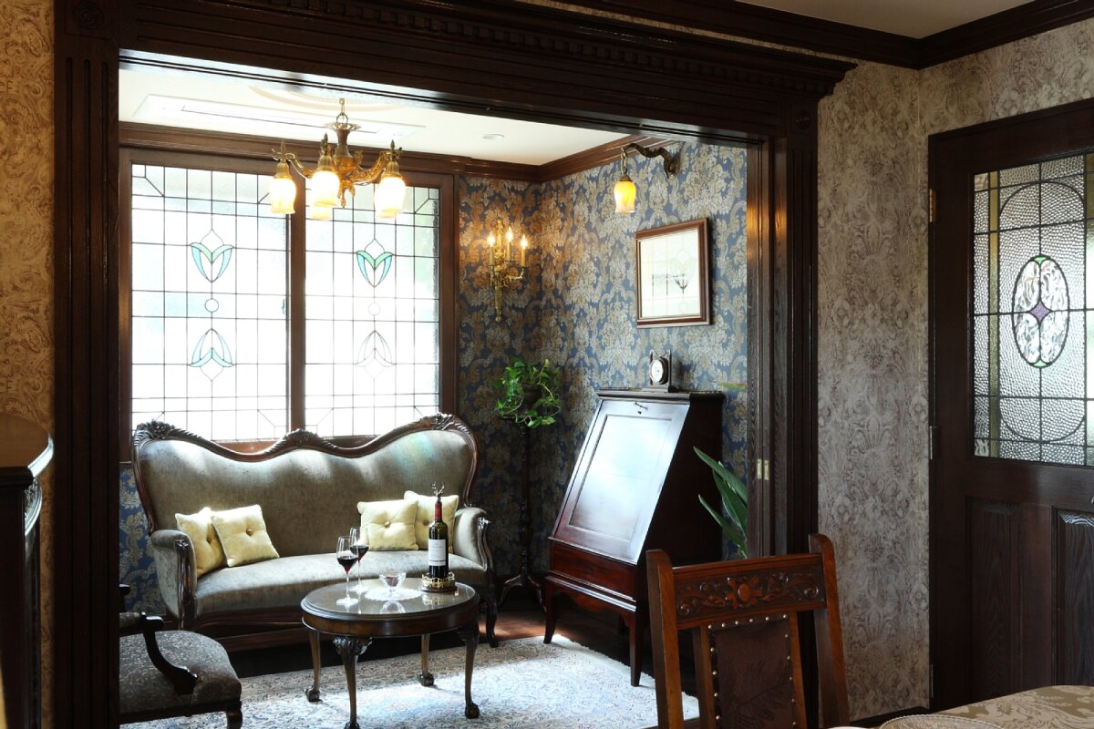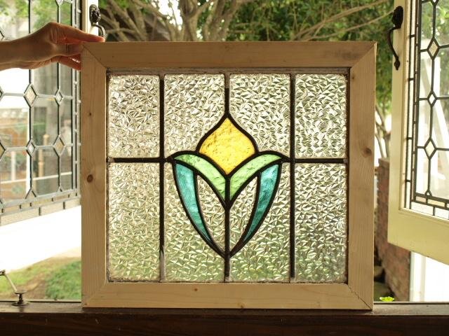 東京都のW邸です。戸建てのリフォームでご希望のサイズに加工したステンドグラスをお部屋の窓に取り付けました。元のアンティークステンドグラスです。