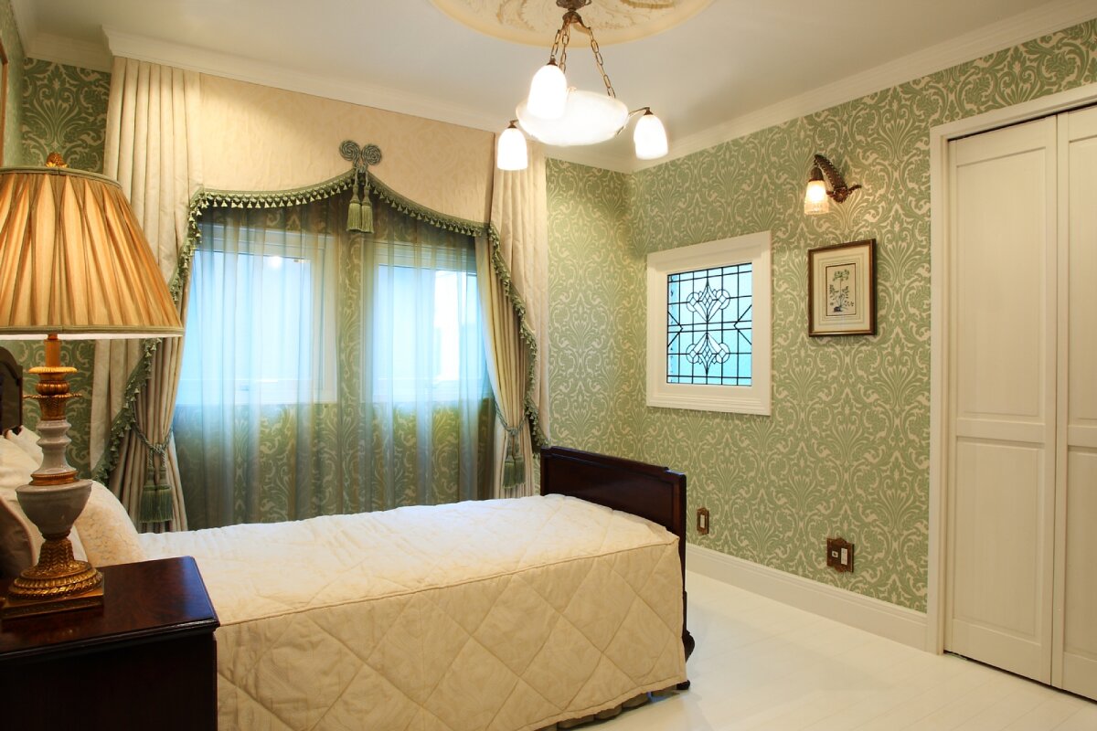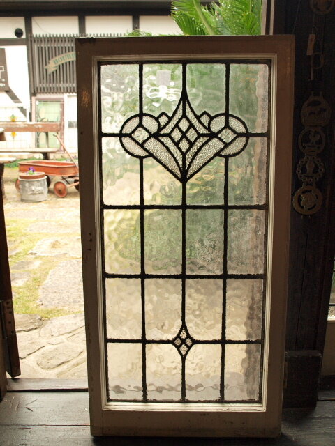 東京都のN邸です。戸建てのリフォームでご希望のサイズに加工したステンドグラスをお部屋の窓に取り付けました。元のアンティークステンドグラスです。2枚使用し、上部の絵柄を切り取って使います、下部のダイヤ柄は別の窓で使用します。