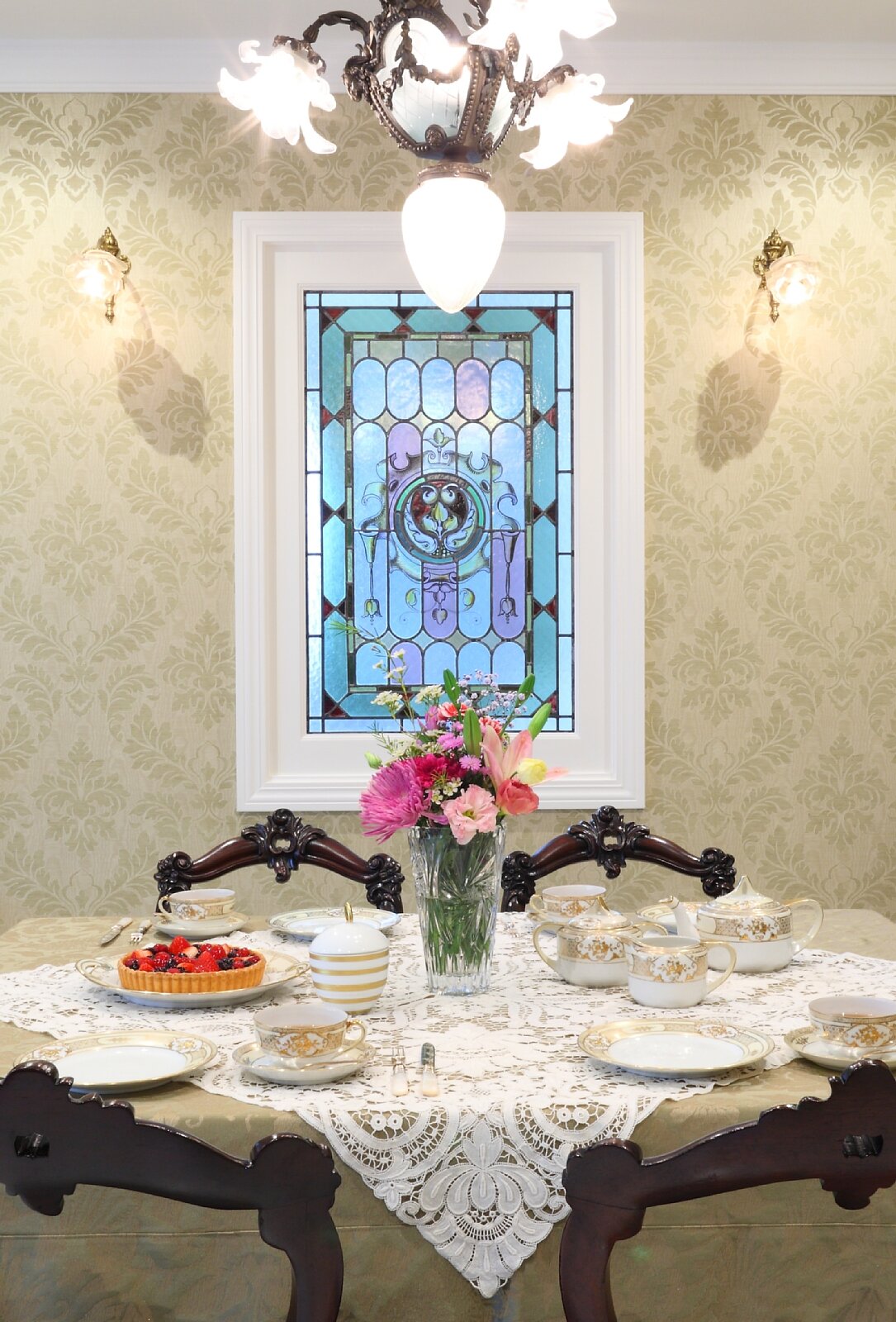 東京都のN邸です。戸建てのリフォームでご希望のサイズに加工したステンドグラスをお部屋の窓に取り付けました。元のアンティークステンドグラスです。