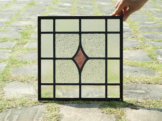東京都のN邸です。戸建てのリフォームでご希望のサイズに加工したステンドグラスをお部屋の窓に取り付けました。元のアンティークステンドグラスです。