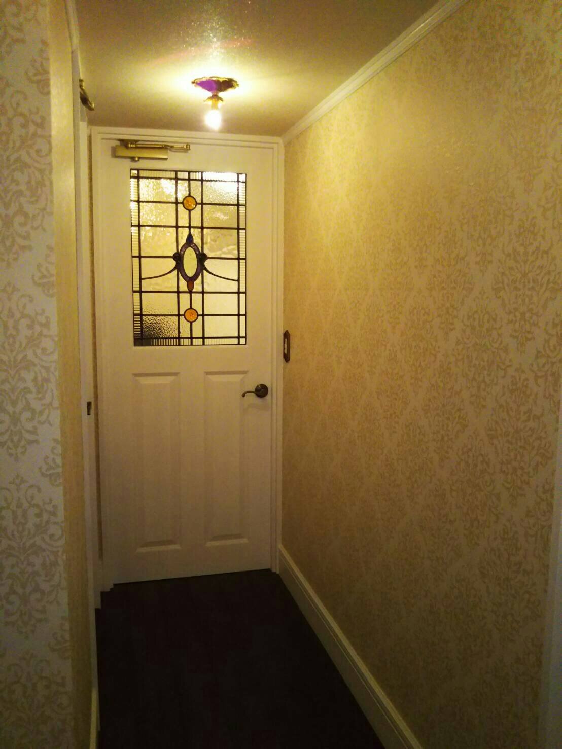 神奈川県のH邸です。マンションのリフォームでご希望のサイズに加工したステンドグラスをお部屋のドアに取り付けました。元のアンティークステンドグラスです。