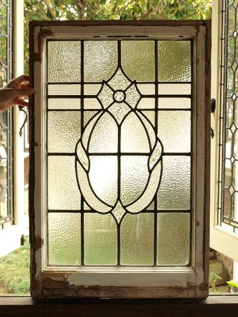 神奈川県のH邸です。戸建ての新築でご希望のサイズに加工したステンドグラスをお部屋の窓に取り付けました。元のアンティークステンドグラスです。