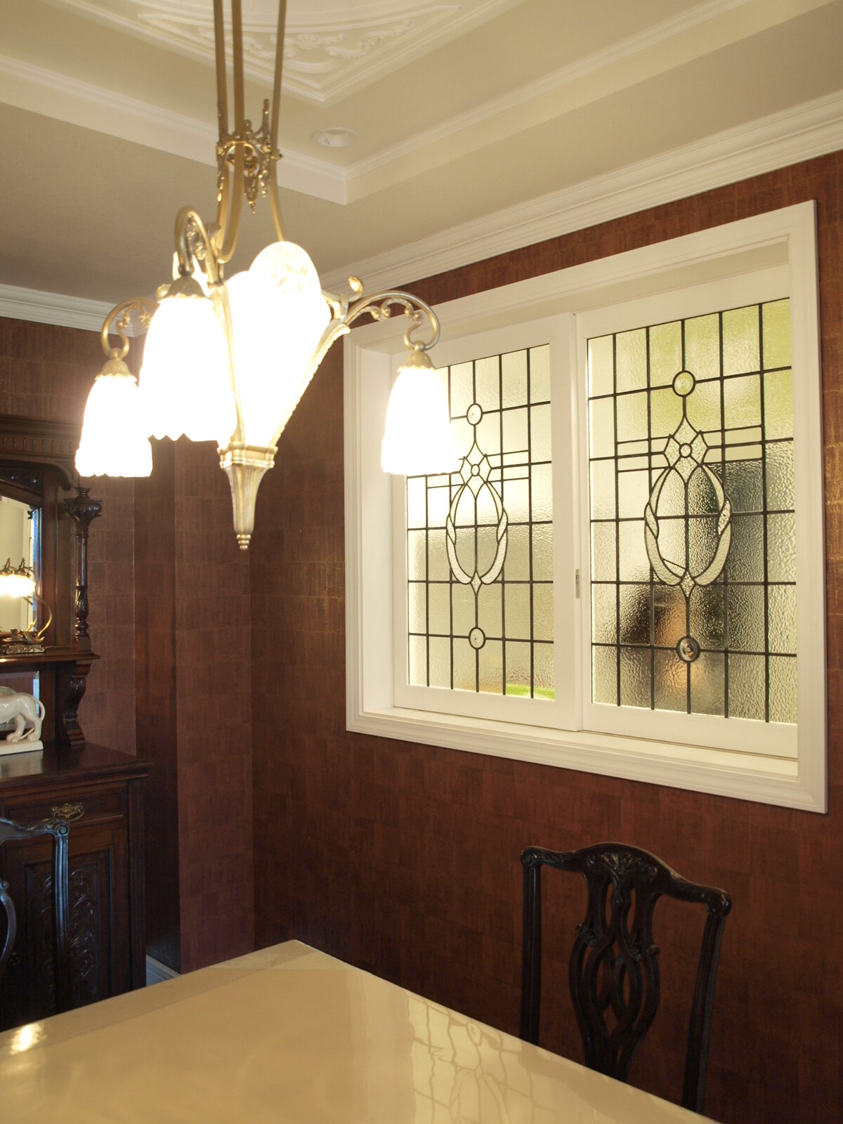 神奈川県のYK邸です。戸建てのリフォームでご希望のサイズに加工したステンドグラスをお部屋の窓に取り付けました。