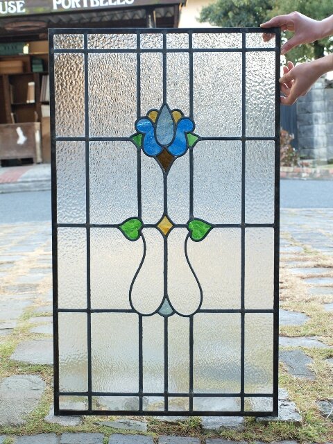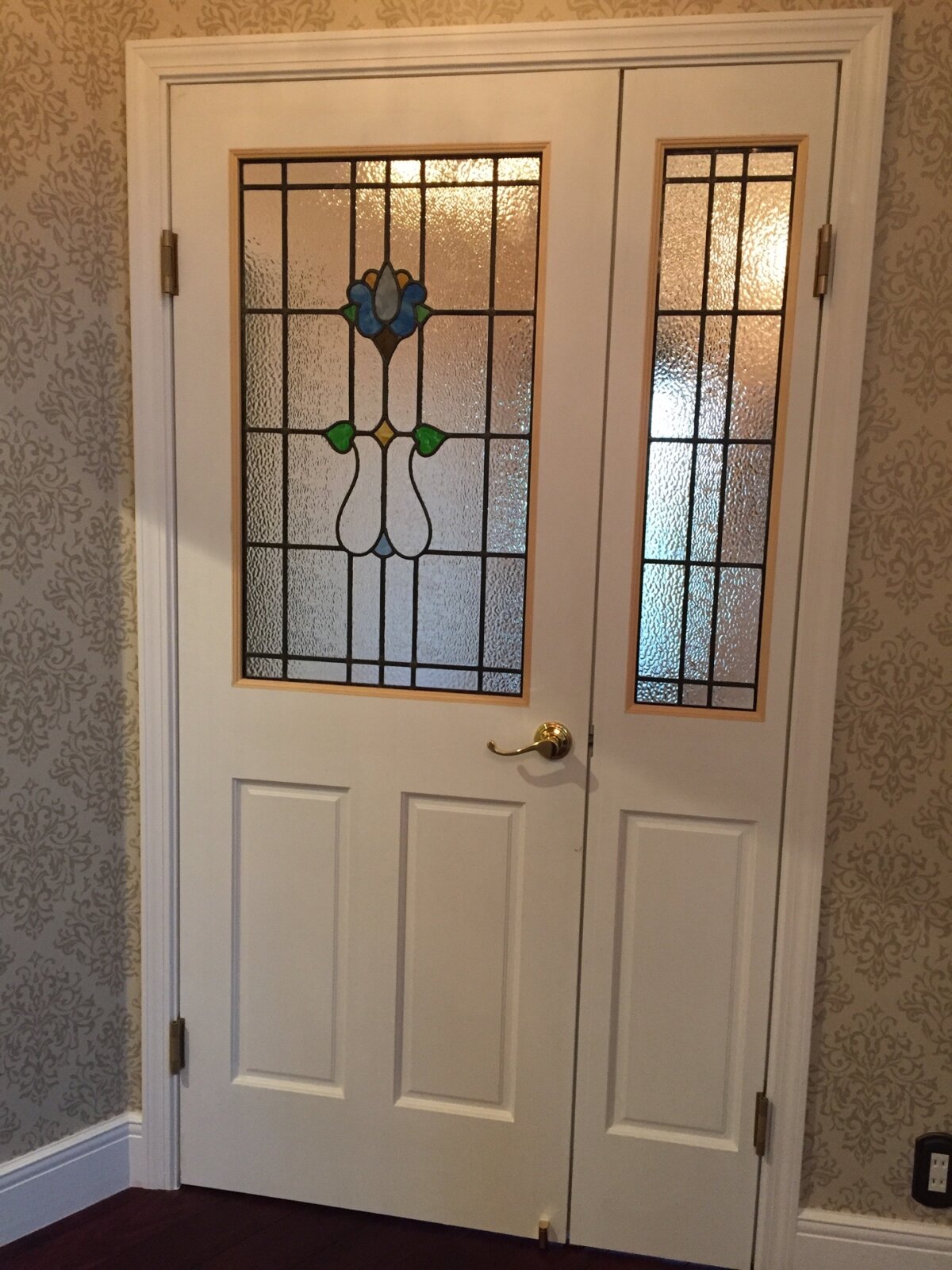 神奈川県のH邸です。戸建てのリフォームでご希望のサイズに加工したステンドグラスをお部屋のドアに取り付けました。元のアンティークステンドグラスです。