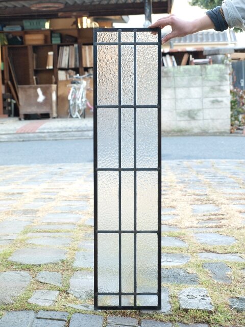 ひし形にカットしたステンドグラスをドアにはめ込みました。