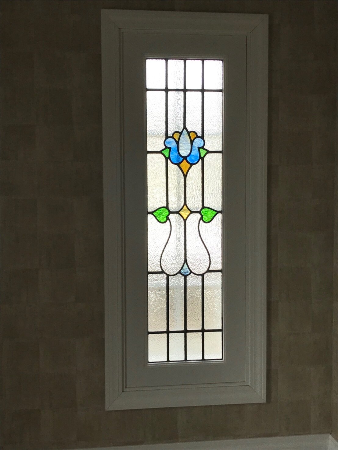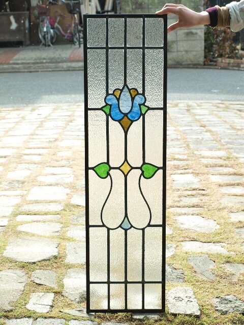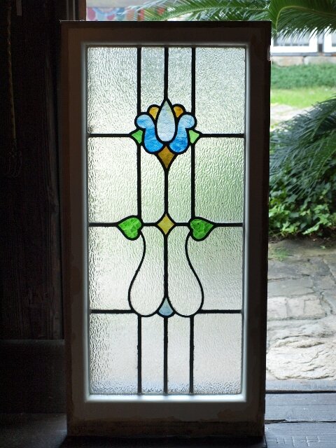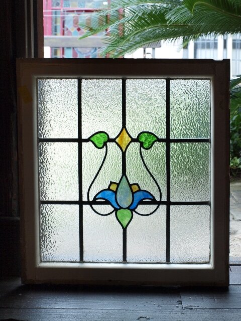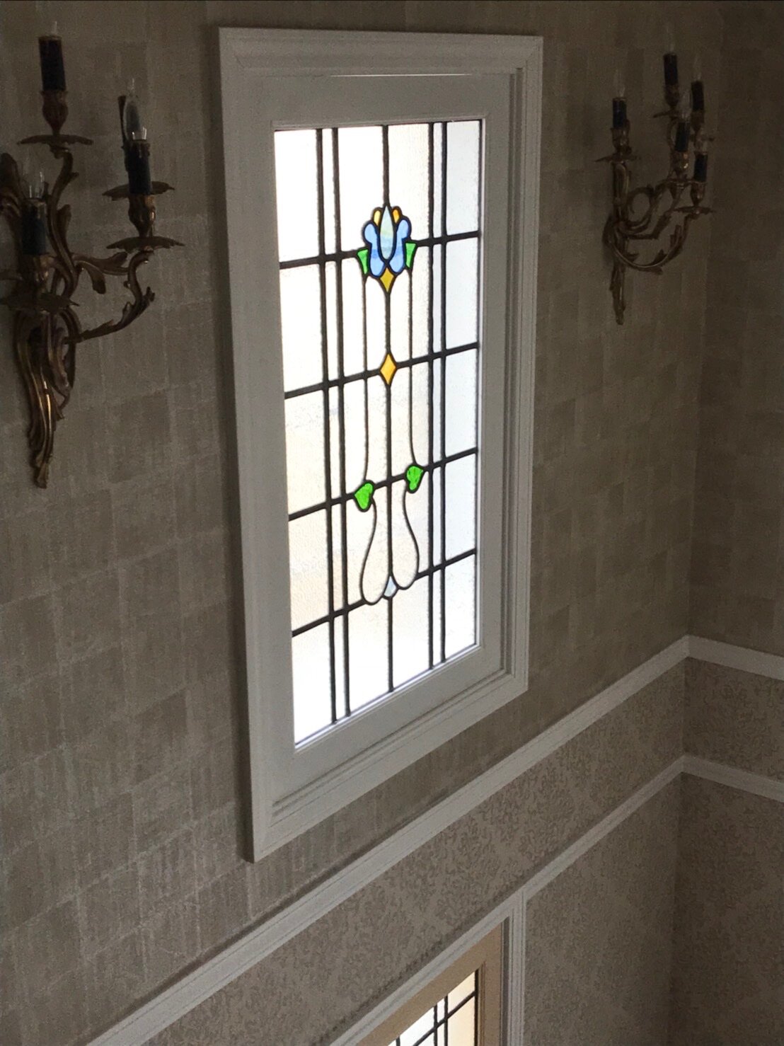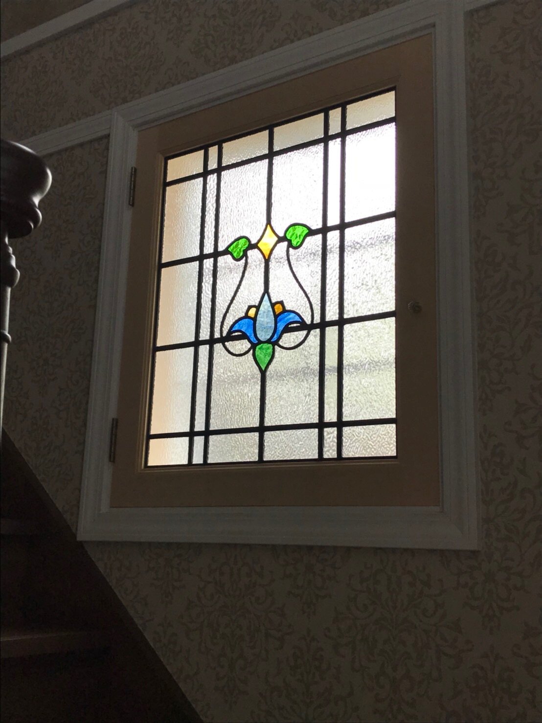 神奈川県のH邸です。戸建てのリフォームでご希望のサイズに加工したステンドグラスをお部屋の窓に取り付けました。元のアンティークステンドグラスです。