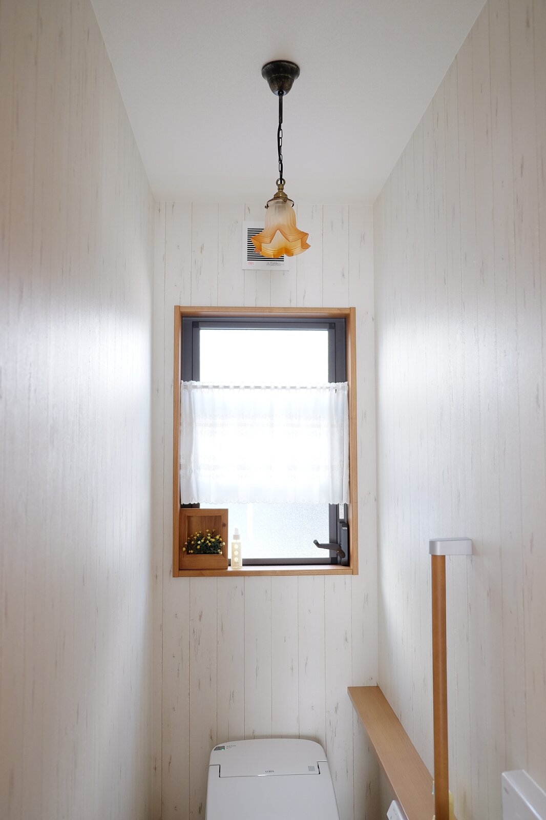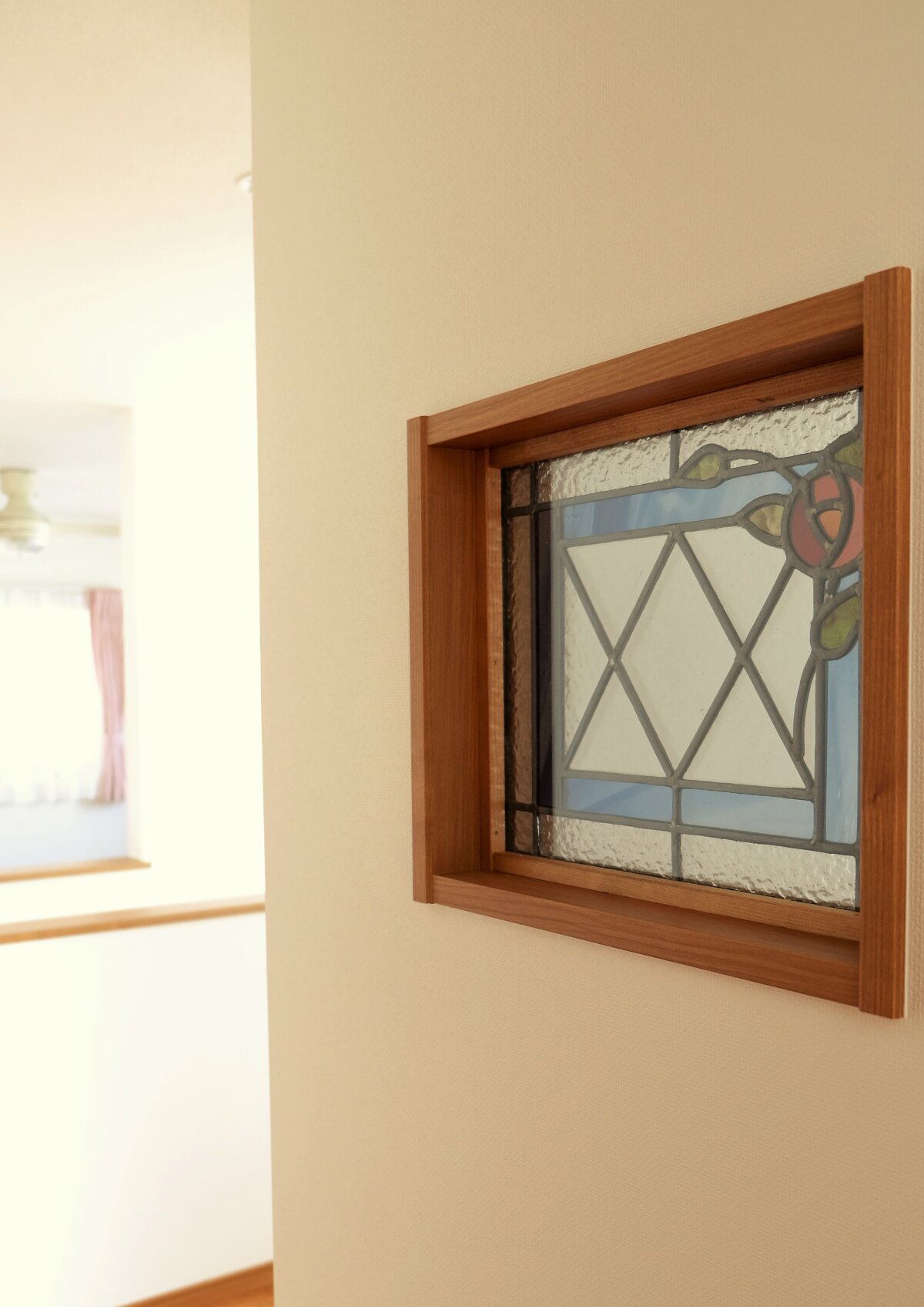 今回の家づくりで一番最初に決めたのが、ステンドグラスでした。 壁紙やその他のインテリアをステンドグラスの雰囲気に合わせてコーディネートしたので、全体的に柔らかく落ち着いた空間に仕上がったと思います。 照明一つで空間の雰囲気がずいぶん変えられる事を今回の家づくりで実感したので、 ペンダントランプなどの簡単にシェード交換できるものなどは、 これからも楽しみたいと思います。 出来上がってみると、さほど広くはない書斎が一番雰囲気があり、 主人に「一番豪華な部屋に見えるね」と言われました(笑) 今回は、色々とお世話になりました。ありがとうございました!