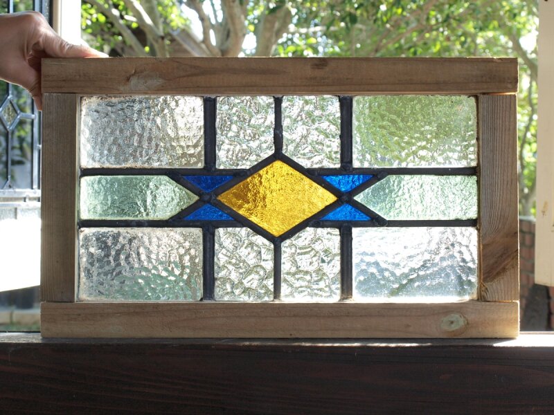上下対称につないだステンドグラスをFIX窓にはめ込みました。