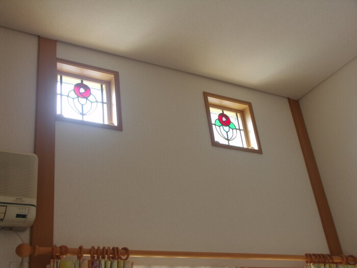 1800年代のステンドグラスをキッチンの窓と階段吹き抜けの窓に取り付けました。